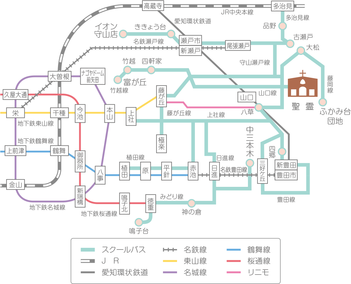 「新瀬戸駅」「尾張瀬戸駅」よりスクールバス