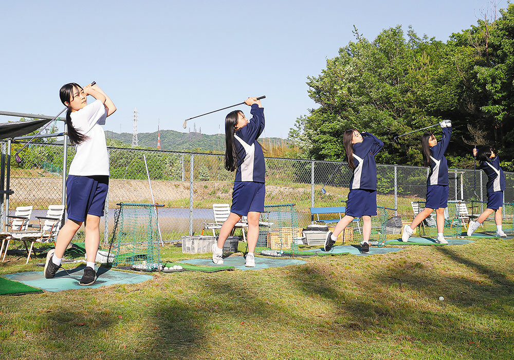 大会に出場するための競技ゴルフを練習します。校内に天然芝とバンカーがある練習環境と、休日だけでなく、平日授業後にゴルフ場でラウンド練習ができる環境は聖霊ならではだと思います。ぜひ、聖霊ゴルフ部で腕を磨いてみませんか? 真剣に取り組むことができる人を歓迎します。